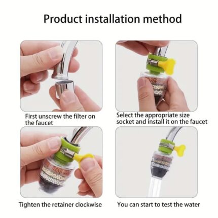 Six layers PVA non-woven fabric, ceramic balls, mineral balls, zeolite balls, carbon balls, filter impurities adjust pH,remove chlorine and eliminate organic matter. 360° rotating design with a maximum tilt angle of 65°.water filter Tap.